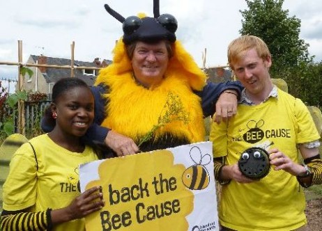 Graham Allen (centre) dressed as a bee to support the Bee Cause at Bulwell Forest Garden's Bee Day: