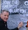 Government Minister Vernon Coaker, MP for Gedling, signs our graffiti wall - saying "Keep the faith it will happen". This was part of a national day of action in October 2008. MPs were asked to urge the Prime Minister not to wriggle out of a commitment to invest in renewable energy.